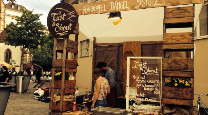 Am Jugend Kultur Festival stellen wir die gastronautische Werkbank auf und versorgen die musik- und feierfreudigen Festivalgänger mit Kartoffeln. Unter dem Namen Härdöpfel-Bängel werden während zweier Tage auf dem Barfüsserplatz über 100kg Kartoffeln gebohrt, getwistet und frittiert. Für unsere Twist-Werkstatt mit XXL-Frittierwanne haben wir ein kleines feines Häusschen gebaut: aus Holzharassen (Zurzacher-Thermalwasser!), Jutensäcken und Kabelbindern. […]