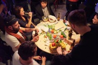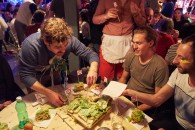 An 12 Tischen verteilt sitzen 120 Clubgäste. Alle hungrig und schwerst motiviert. In diesem einzigartigen Club ist es wie im Leben: Liebe erhält nur, wer Liebe schenkt. Sauce kriegt nur, wer auch Gurke schneidet. Wie im Leben erhält nur derjenige Salat, der auch bereit ist für den Käse. Und das mit dem Brechen des Brotes ist ja schon seit über 2000 Jahren etabliert.